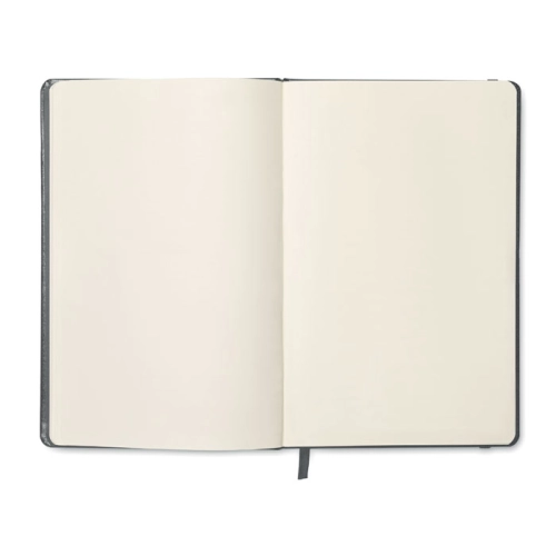 A5 notebook with hard PU cover. Casebound. 192 plain recycled paper pages (96 sheets). Matching elastic closure strap and ribbon page-marker. FSC®-certified | FSC MIX CREDIT, P7.1, FSC-C213206