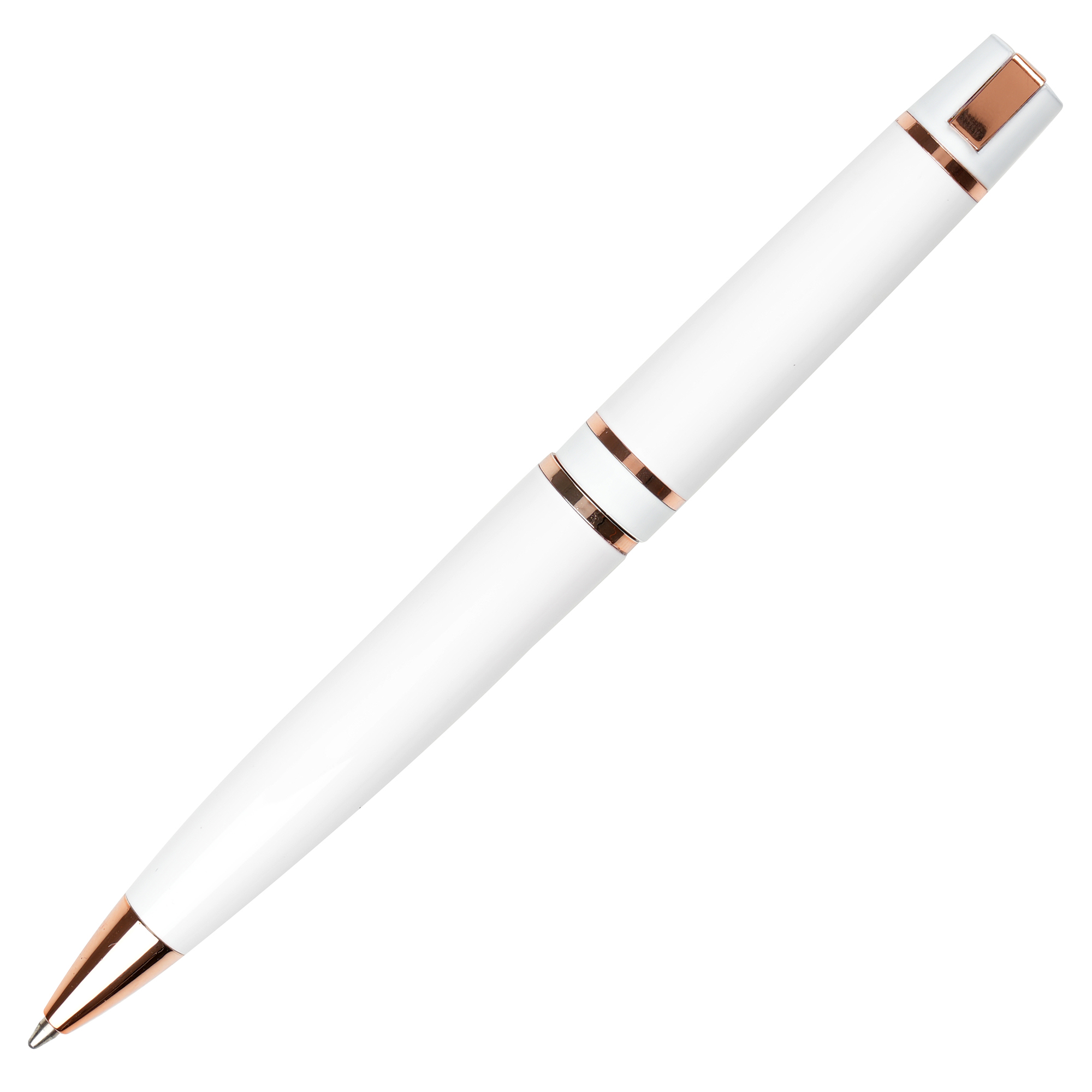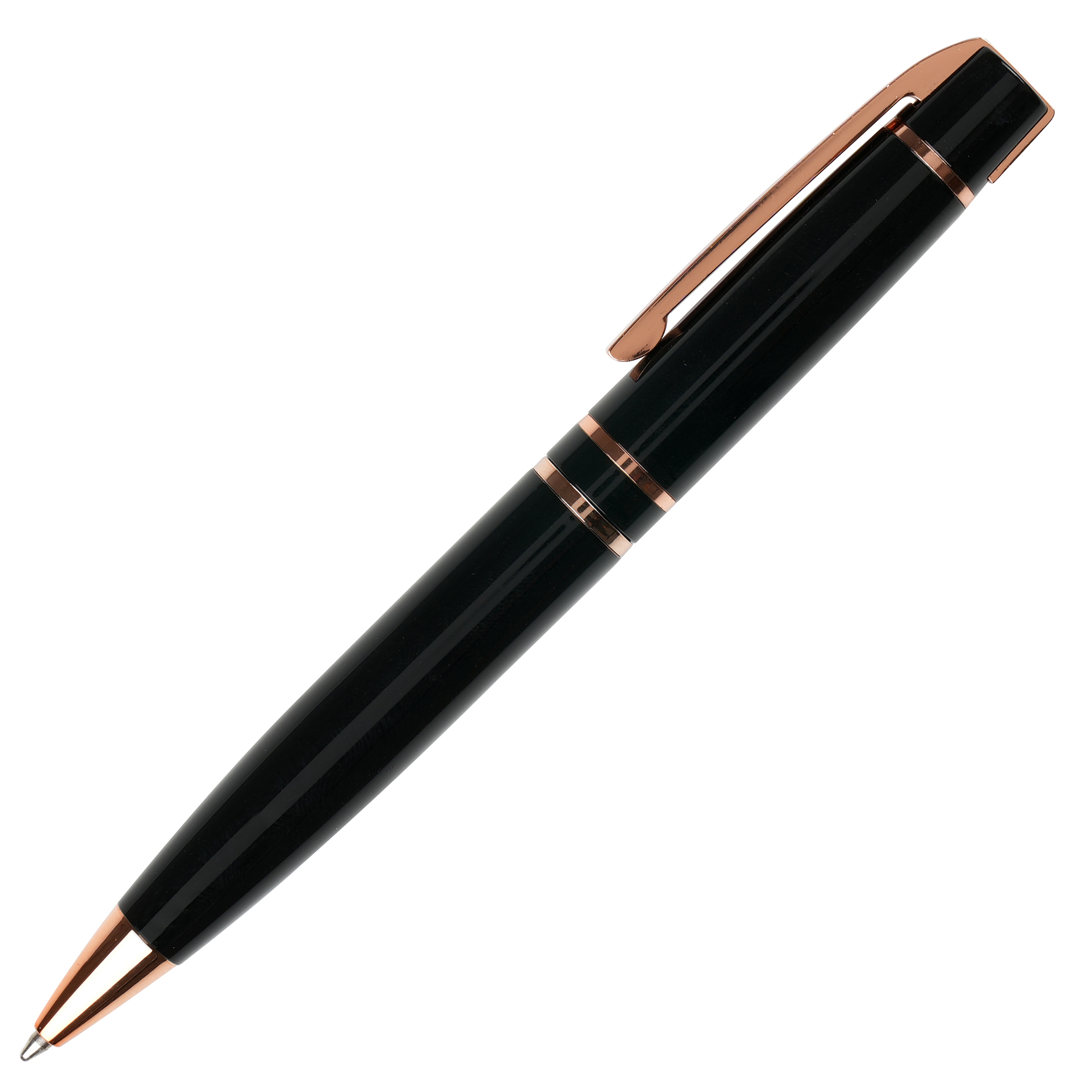A robust yet elegant ball pen with a sublime twist action mechanism. The smooth gloss barrel and rose gold trim complete the high-end feel. Undercoated rose gold for a rose gold engrave finish.