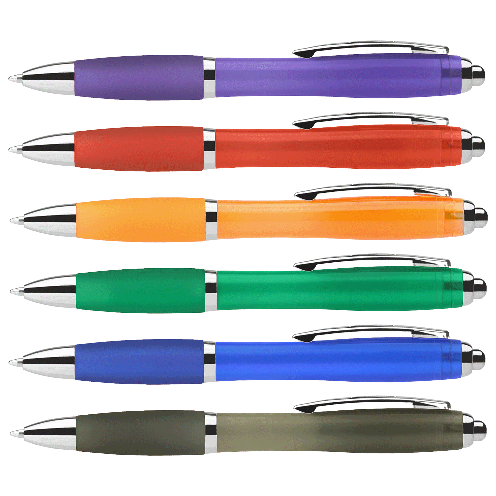 With its vibrant, jewel-tone barrel and grip colours, this shapely plastic pen creates the wow factor everyone is looking for. Assorted colours are also available. This medium ballpoint plastic pen with black ink can be everything you need once you add your company name, logo and promotional message to it. Show everyone why you are the company they want to do business with!